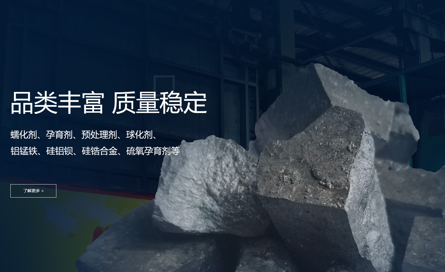 公司品種類多樣化,主要產(chǎn)品:蠕化劑、孕育劑、預(yù)處理劑、球化劑、鋁錳鐵、硅鋁鋇、硅鋯合金、硫氧孕育劑等,多年來深受國(guó)內(nèi)外廣大用戶的信賴。具有嚴(yán)格的質(zhì)量管理體系,已通過GB/T19001-2016/ISO9001:2015質(zhì)量認(rèn)證體系標(biāo)準(zhǔn)要求。